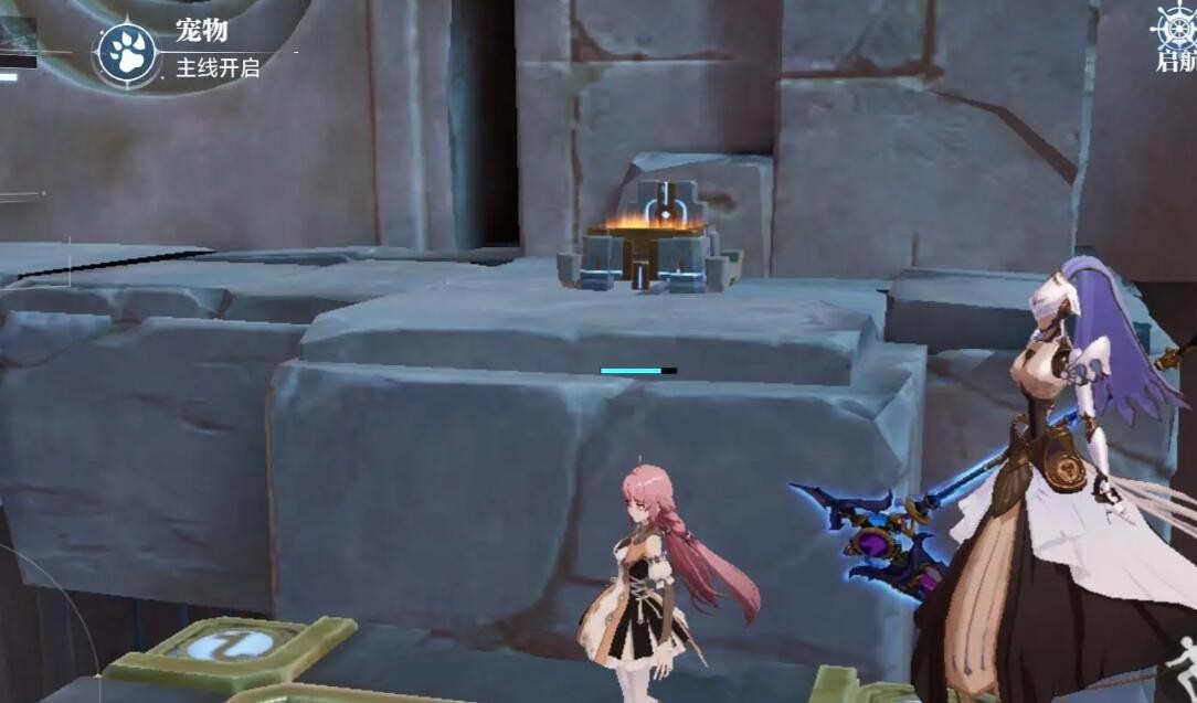4、平台左边缺口下去,看左边角落,地图中间,玩家来到遗迹-上层从平台左侧的缺口下去,在地图的中间向左边的角落看就能找到宝箱
