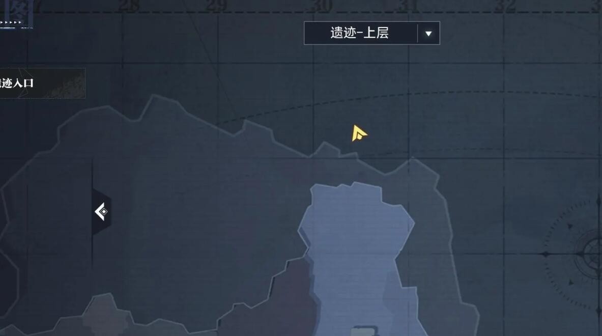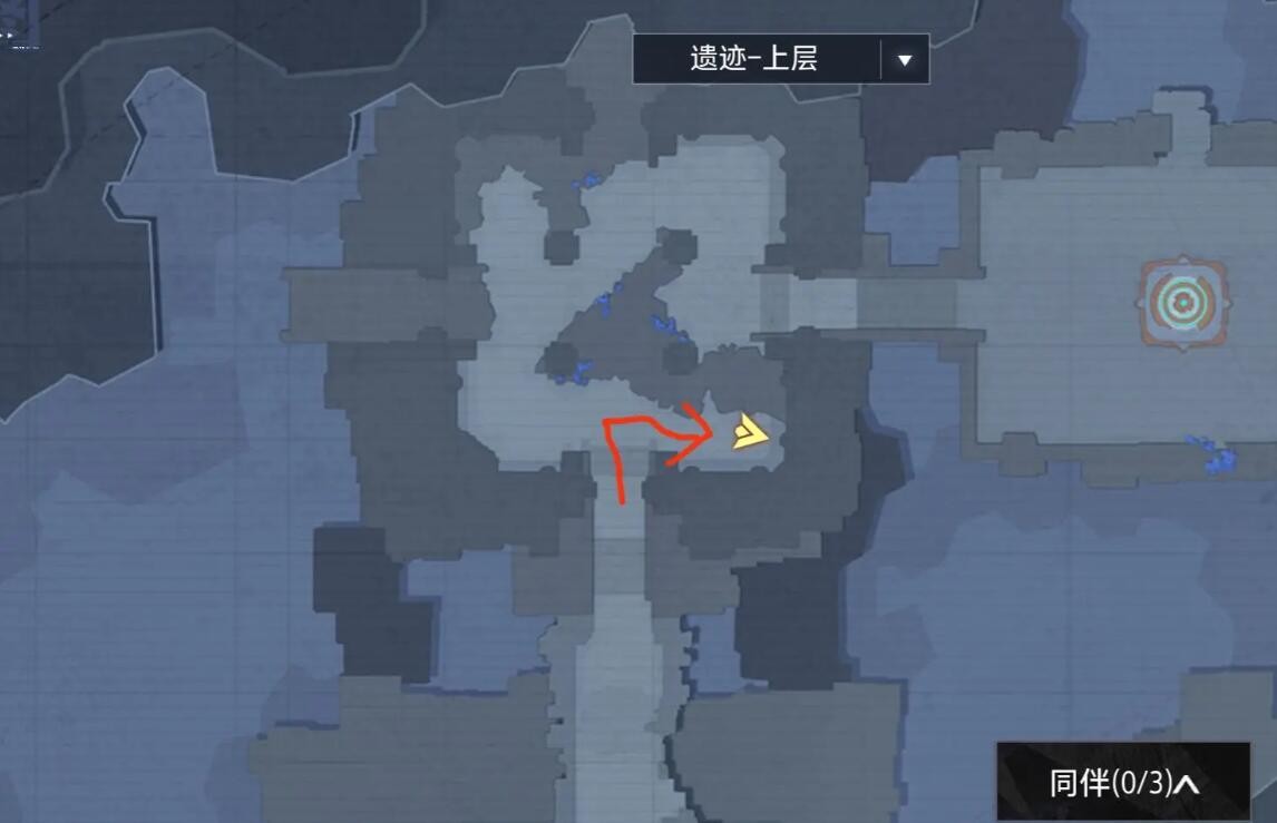 3、进门右转,地图中间靠右,玩家来到遗迹-上层,进门右转,在地图中间靠右的地方就能看见宝箱
