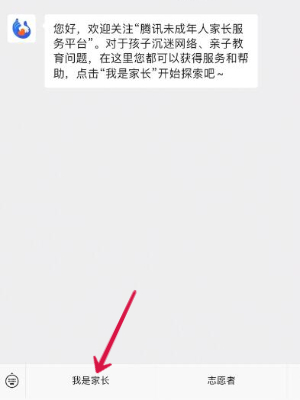 1、玩家首先打开微信,搜索公众号“腾讯未成年家长服务平台”,然后在公众号界面点击左下角的“我是家长”选项。