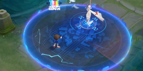 三技能:江户川柯南利用领结型变声器呼出直升机支援。在天空中直升机的搜寻下,追踪眼镜在电子地图上投射出嫌疑人的坐标。