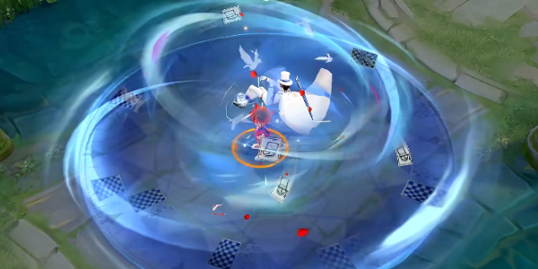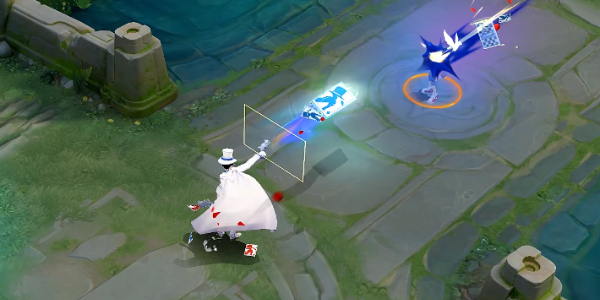 二技能:在白鸽与卡牌的伪装中,魔术师闪烁出现。被动范围设计为钟表圆盘。