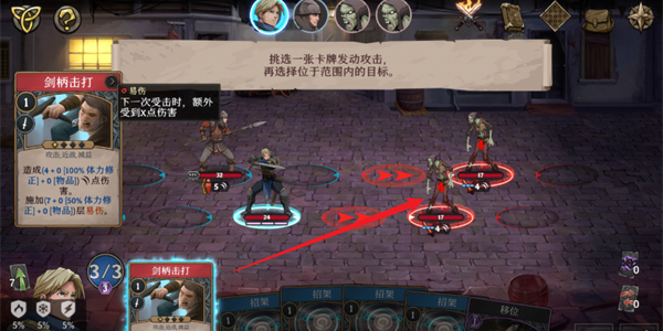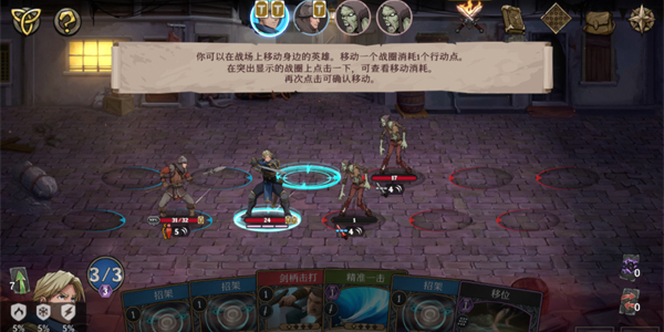 4、进入战斗关卡之后,需要使用英雄的攻击卡牌攻击敌对的单位,防御的卡牌可以防御对手的进攻。