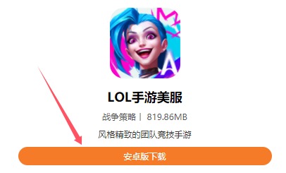 进入本站的LOL手游美服下载界面后,找到下载页面中的【安卓版下载】按钮,点击后就可以直接下载安装了。