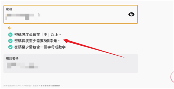 4、最后输入自己的密码,并确保自己的密码是符合要求的,然后同意一下账号相关的服务条款就可以了。