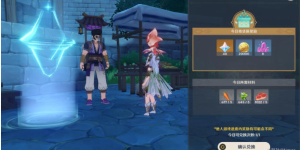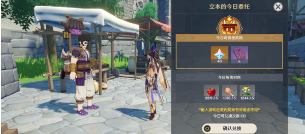 PS:旅行者每天最多可以交付一次材料。请注意每日奖励刷新时,交付材料的机会如未使用将无法保留。