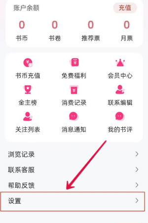 1、首先我们打开海棠文学城app,在【我的】页面点击进入【设置】选项。