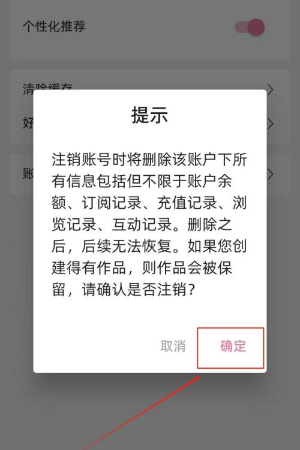 3、最后我们在弹出的窗口中点击【确定】按钮就可以成功注销账号了。