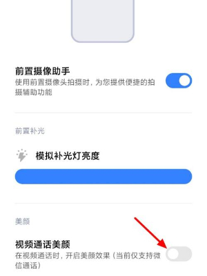 设置步骤:【设置】→【更多设置】→【前置摄像头助手】→【视频通话美颜】。