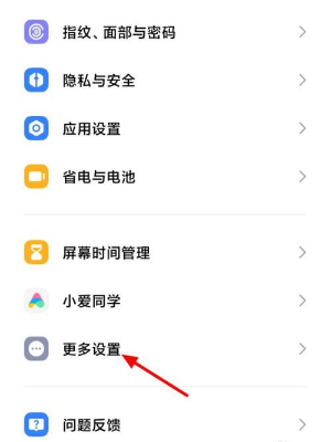 2、进入设置后我们下拉找到【更多设置】点击进入。