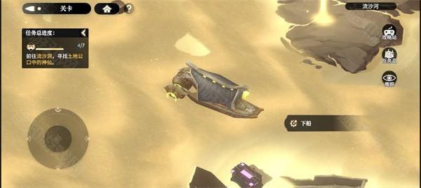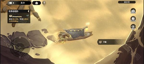 1、跟随任务指引前往台阶下船渡河。