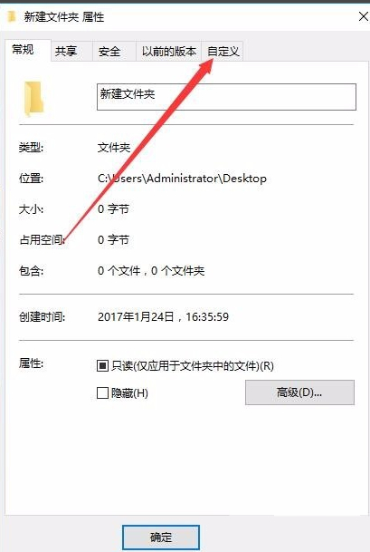 2、在打开的新文件夹属性窗口,点击右侧的“自定义”标签。