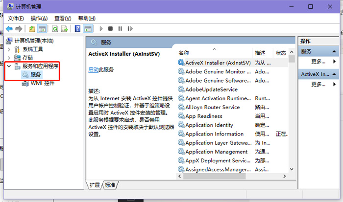 5、打开【服务和应用程序】下的【服务】。